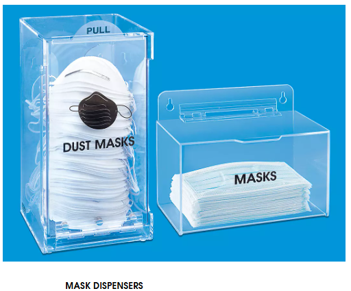 FACE MASK DISPENSER, ACRYLIC, 9"W x 8"H x 5-1/4"D DISPENSER ONLY; MASK NOT INCLUDED